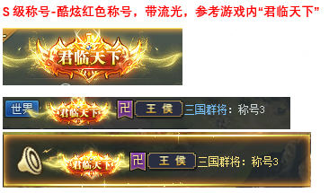 称号样板展示(注:最终称号中的文字为您定制的文字):