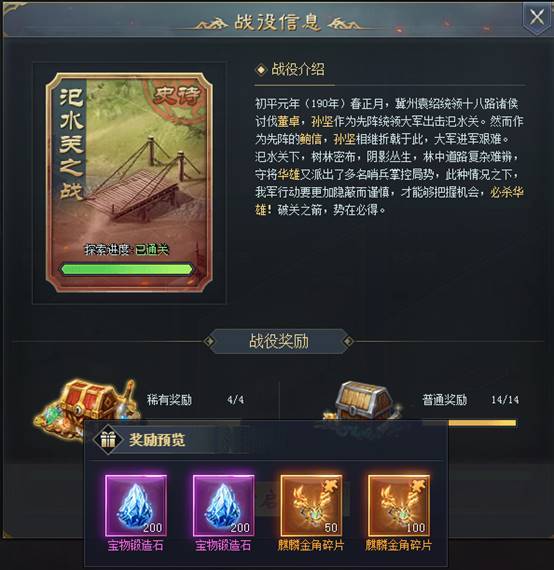副本内产出一次性的稀有奖励和将领宝物,副本奖励永久只能领取1次,重置副本不会重新生成奖励